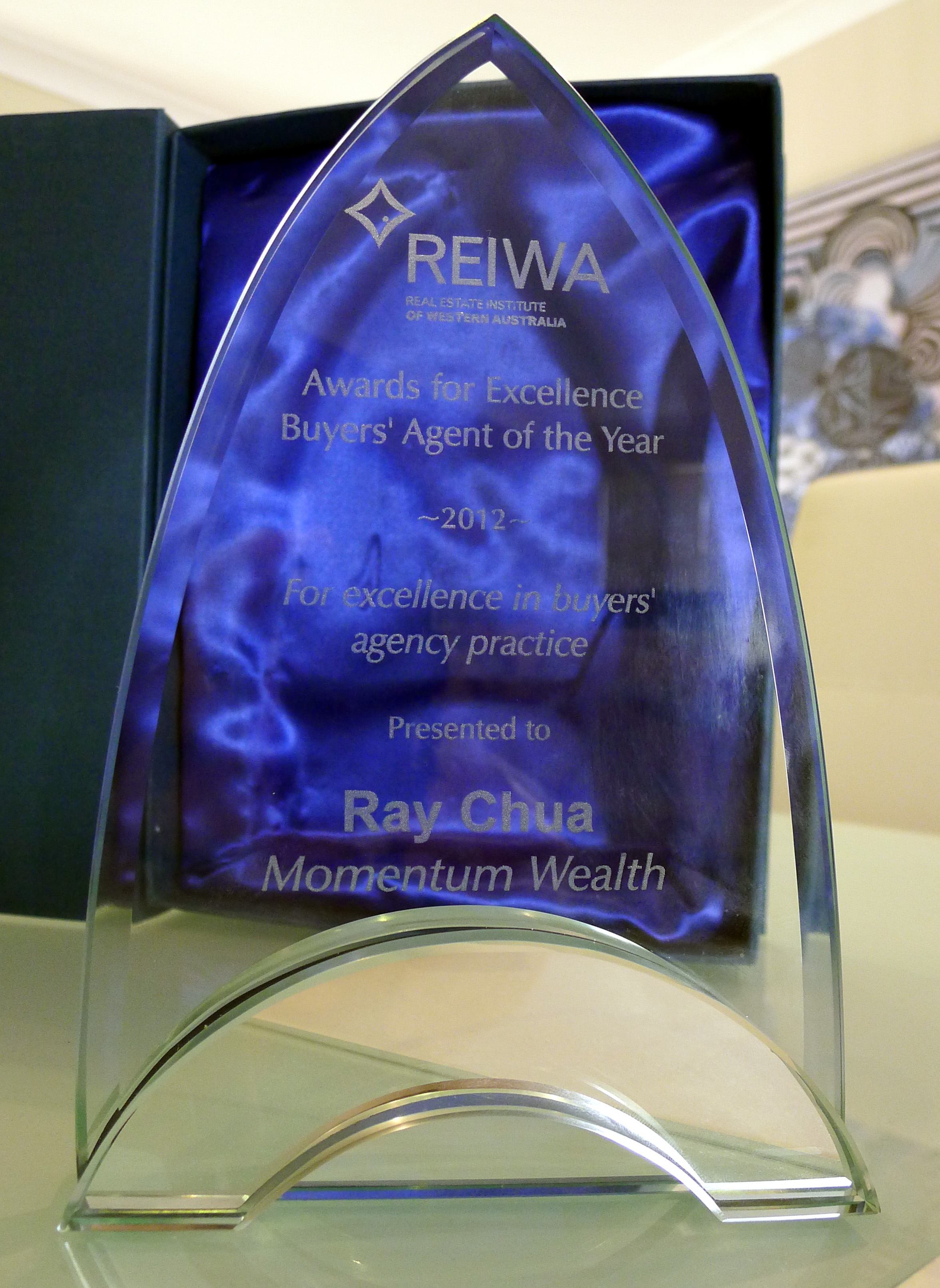 Property Investing REIWA Buyers Agent of the Year 2012 Posted by Ray Chua on September 20, 2012November 7, 2018 What an honour to be recognized by my peers at REIWA & to have been selected Buyers Agent of the Year 2012! Thanks Momentum Wealth, for providing such a fantastic platform for me to shine. Share this: Share on Facebook (Opens in new window) Facebook Share on X (Opens in new window) X Share on LinkedIn (Opens in new window) LinkedIn Email a link to a friend (Opens in new window) Email More Print (Opens in new window) Print Share on Reddit (Opens in new window) Reddit Like Loading...